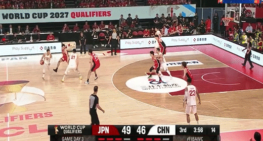 高诗岩借掩护三分追平比分!中国男篮49-49日本