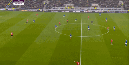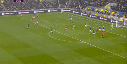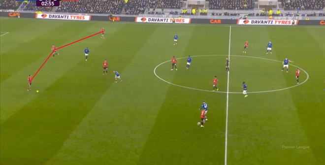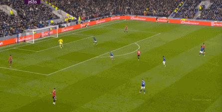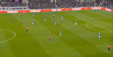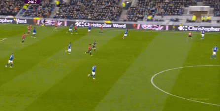 本场比赛的他,的确出现了很多问题,但在两线之间出现问题的球员,远不止布鲁诺自己,而这个时候,你就要看到埃弗顿这个对手的特殊之处,因为在中场区域,莫耶斯直接摆出了格耶和伊洛布格南两名黑人后腰。