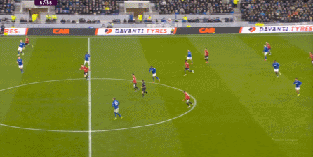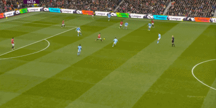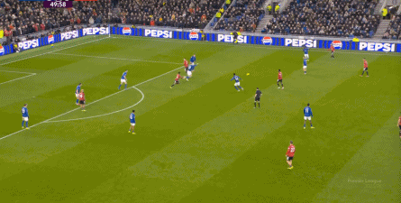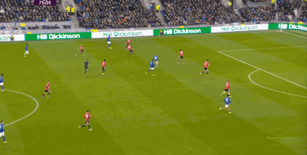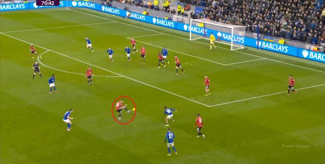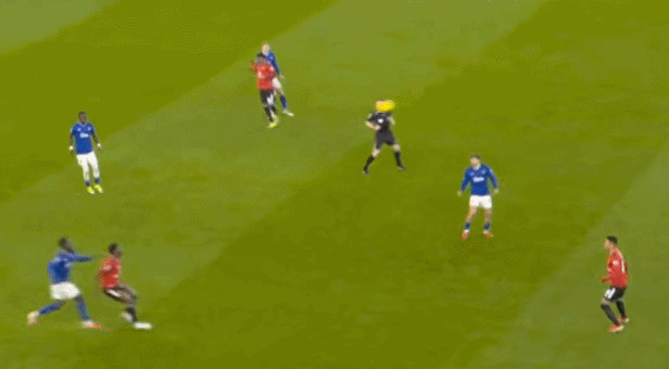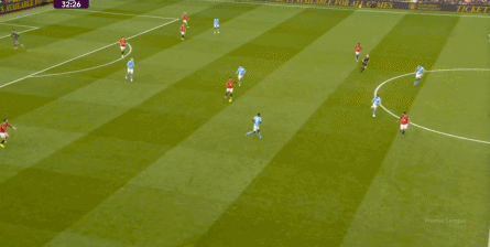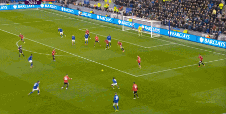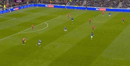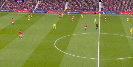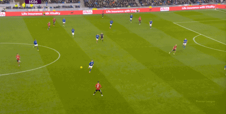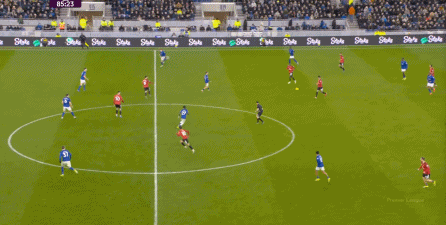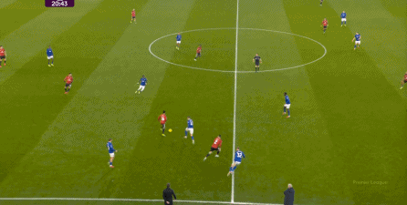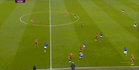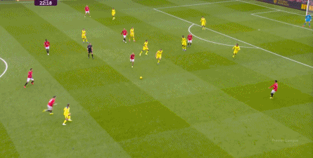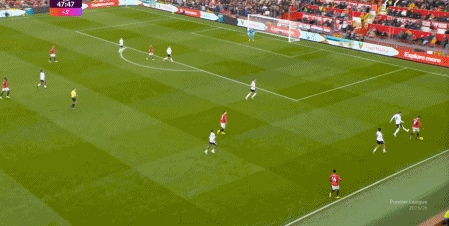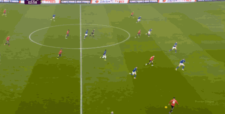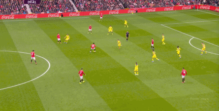 在没有固定且典型的中锋角色的情况下,曼联实际上是在用跑动牵制对手,从而绕进两线之间: