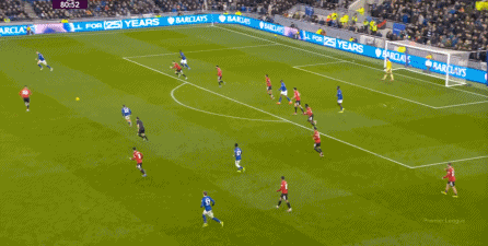 尤其是在这场比赛,当埃弗顿在下半场的后半段占据上风,整体队形压上来之后,适合谢什科发挥的环境就更为清晰了。